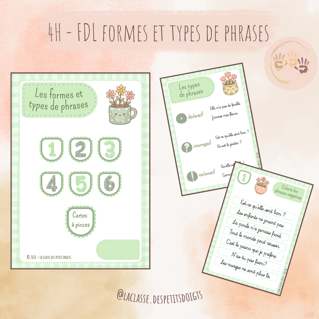 🔤 Formes et types de phrases – Dossier et Cartes à pinces (4H) 📎📖